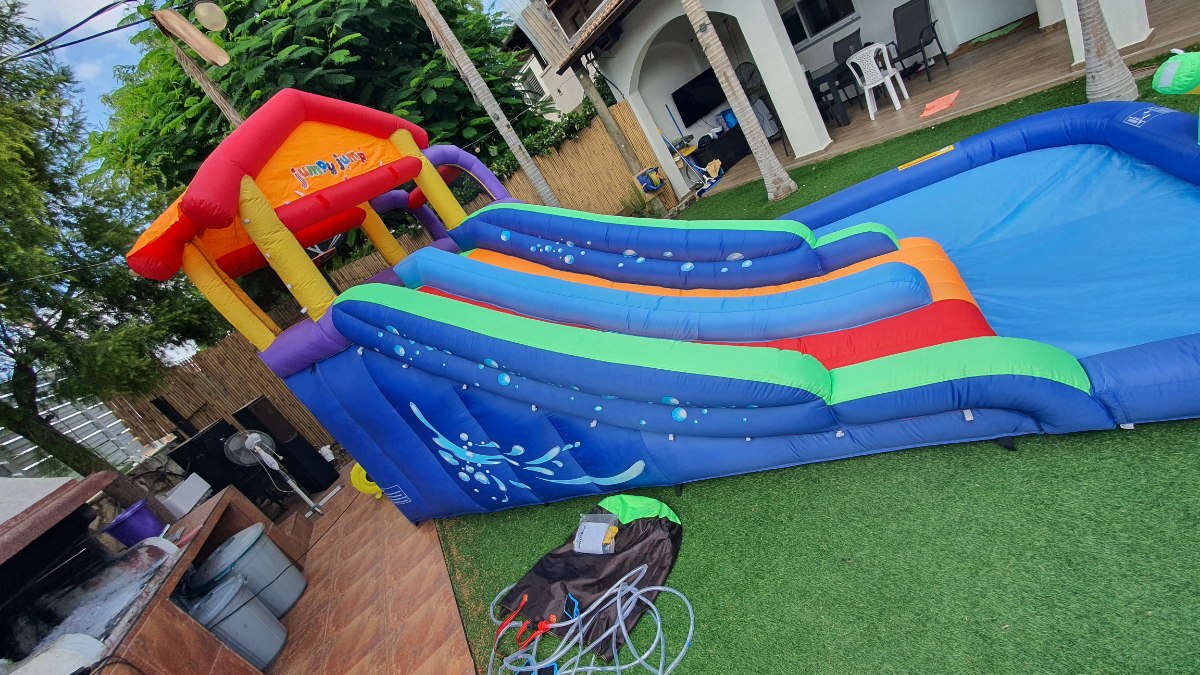 יש קרעים קטנים במדרגות, המתקן מתנפח באופן תקין. מחיר מציאה!!!